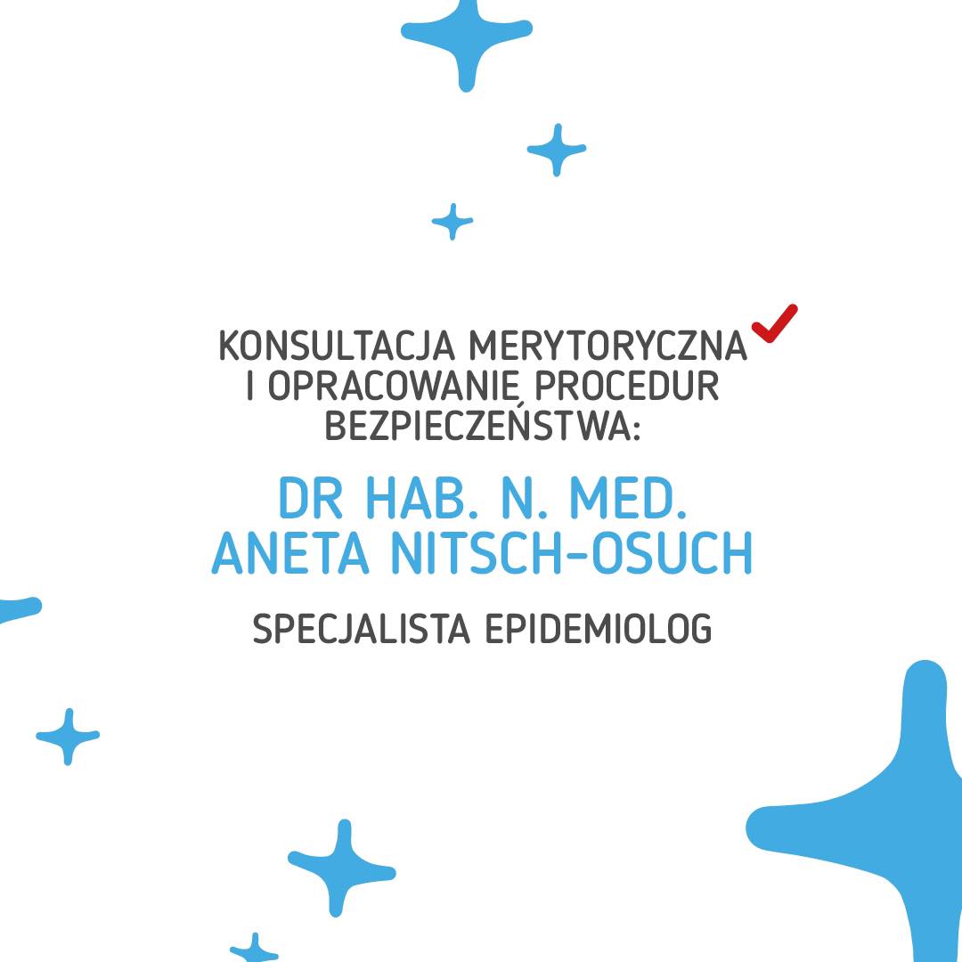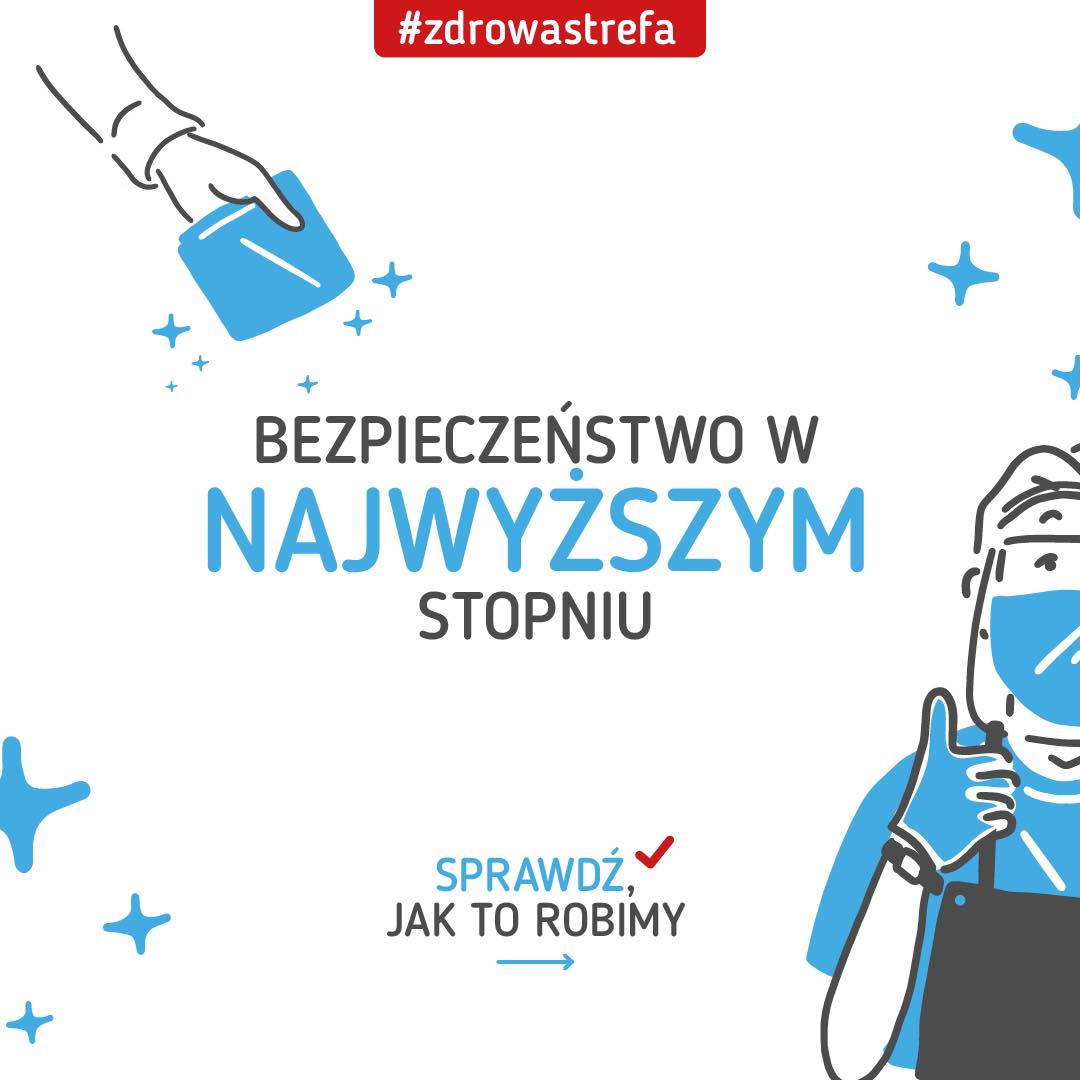 Nazwana przez nas dumnie #zdrowastrefa, to specjalnie dla nas opracowane przez Panią dr hab. n. med. Anetę Nitsch-Osuch - specjalistę epidemiolog, procedury bezpieczeństwa wraz z merytoryczną konsultacją dot. szkoleń naszych Pracowników.